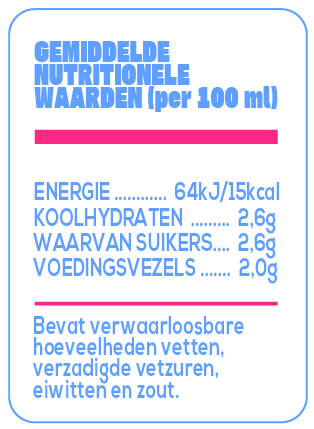 In het recept voor RED'N blue berries zit 8,6 gram in het blikje. Dat is 60% minder dan in een gemiddelde frisdrank.